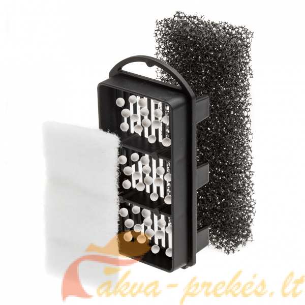 AQUAEL VERSAMAX MINI yra skirtas vandens filtravimui nano, krevečių bei kitų rūšių 10-40 litrų talpos akvariumuose. Šis filtras užtikrina efektyvų vandens filtravimą bei pašalina visas plika akimi matomas apnašas. Švelnus šio įrenginio sukeliamas vandens paviršiaus bangavimas taip pat užtikrina patikimą vandens praturtinimą deguonimi. Sklandžiai veikiančios išorinės rankenėlės dėka, norėdami pritaikyti įrenginio veikimą rezervuaro talpai, neturėsite kišti rankų į vandenį. Filtrai AQUAEL VERSAMAX MINI yra pristatomi kartu su atsargine kempinėle/flisine kasete. Esant poreikiui, kasetę galima pakeisti kitomis medžiagomis, pvz., aktyvinta anglis kempinėlė flisas arba kempinėlė sugėriklis flisas. Papildomos kasetės parduodamos atskirai. Jų pagalba galėsite pritaikyti filtrą konkretiems jūsų akvariumo poreikiams. Garantija: 2 metai.