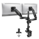 The monitor arm can be mounted on most surfaces with the sturdy and adjustable clamp which fits the edge of your desk in various thicknesses.