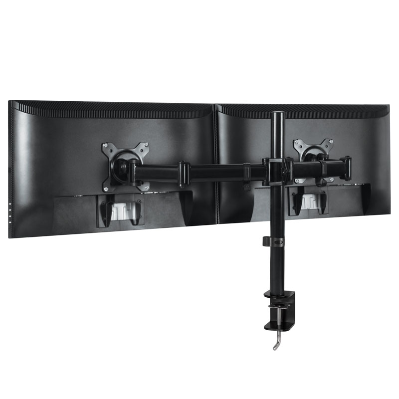 Black dual monitor mount from Arctic, for two 13 – 27 inch monitors (max. 8 kg), VESA 75 x 75 mm / VESA 100 x 100 mm, Height adjustable / Tilt / Pivot