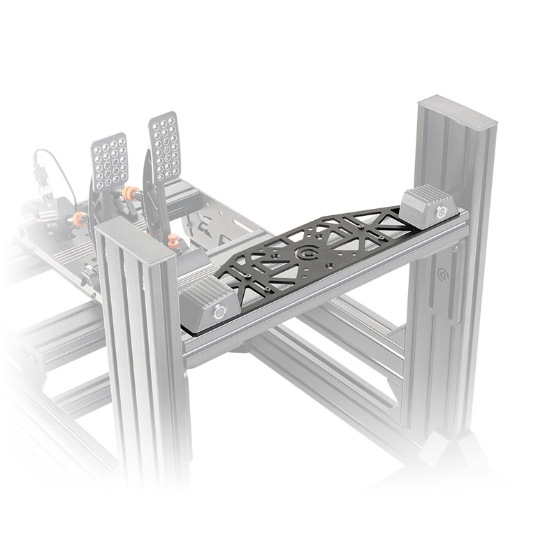 The t-slots in the bottom of the wheelbase allows you to slide your wheelbase back and forth on the bracket. This mounting solution maximizes leg space in your setup and clears the way for comfortable and fully immersive sim racing.