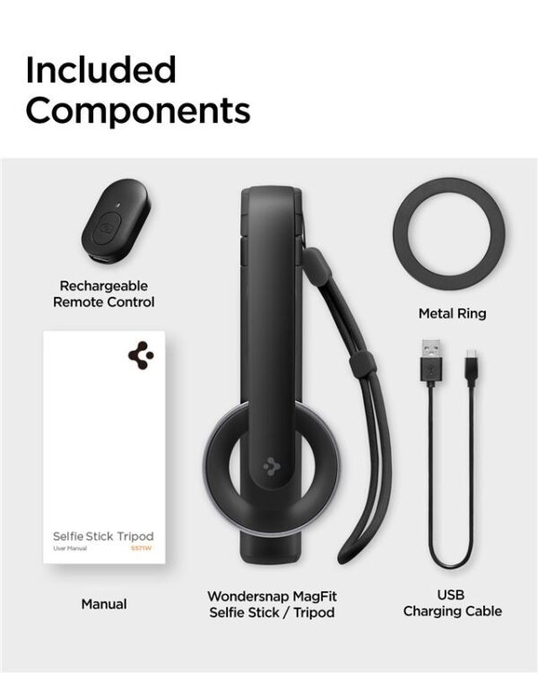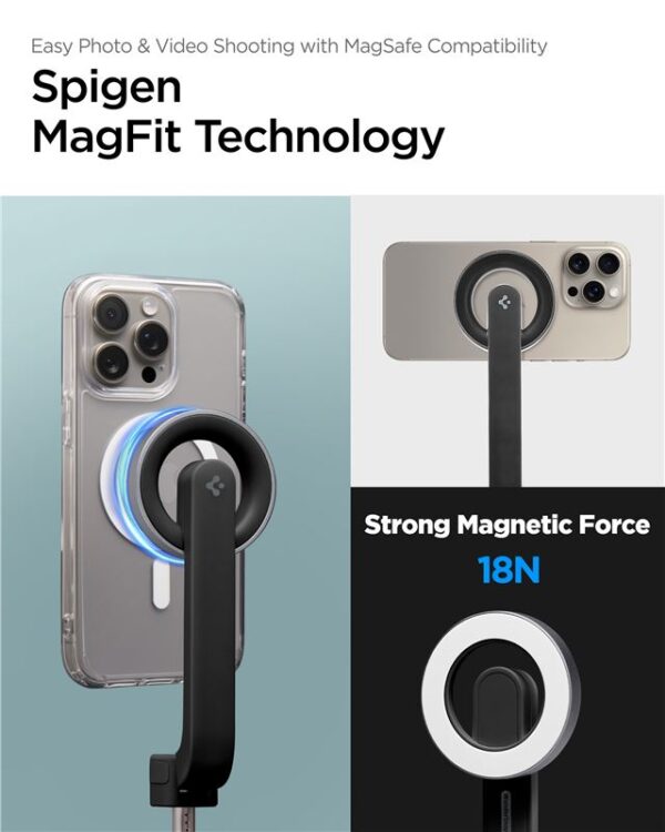 Spigen S571W MagSafe Bluetooth Selfie Stick Tripod is an innovative tool created for photography and filming enthusiasts. Designed specifically to meet the expectations of smartphone users, especially iPhone owners equipped with MagSafe technology. It stands out not only with its unique design, but also with its solid construction.