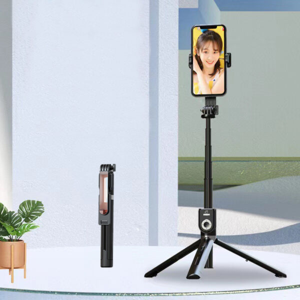 - Features: Selfie stick, tripod, remote control