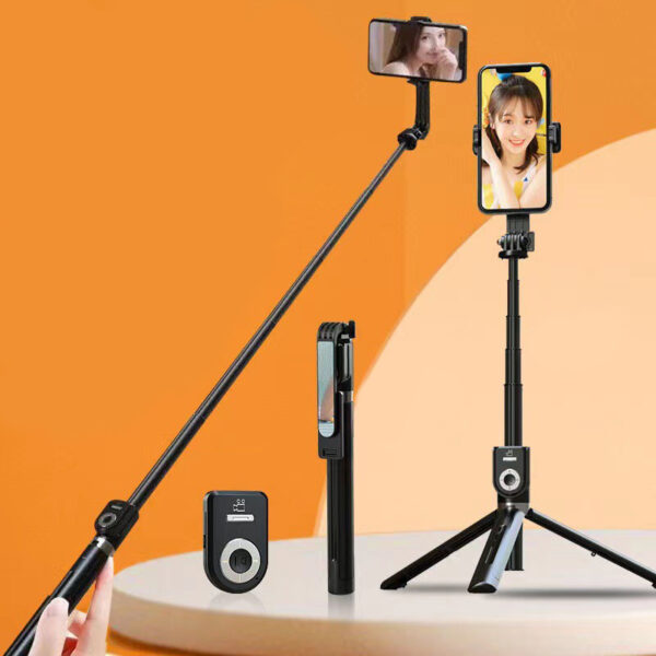 - Features: Selfie stick, tripod, remote control