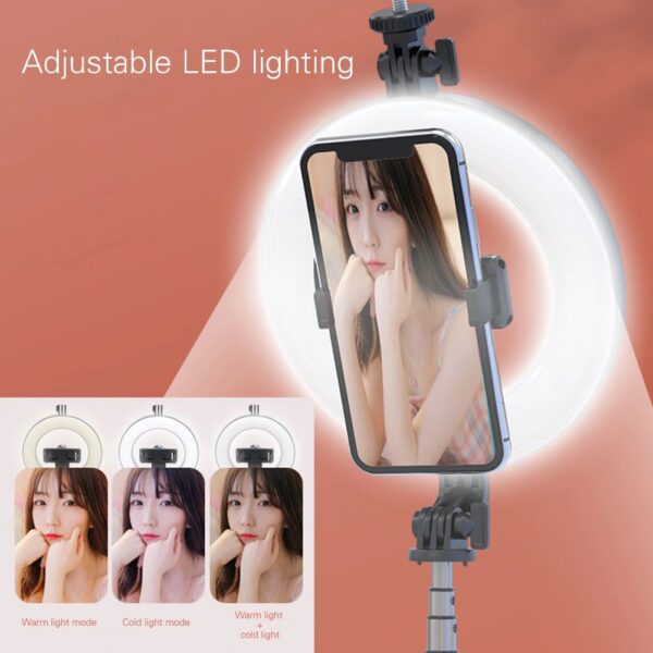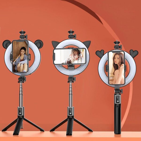 Asmenukių lazda – su atjungiamu bluetooth nuotoliniu valdymu, tripod and ring lamp – P40D-1 juodos spalvos