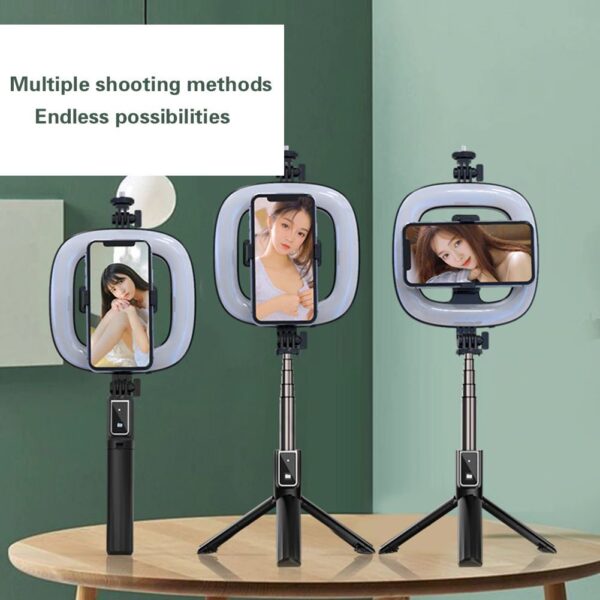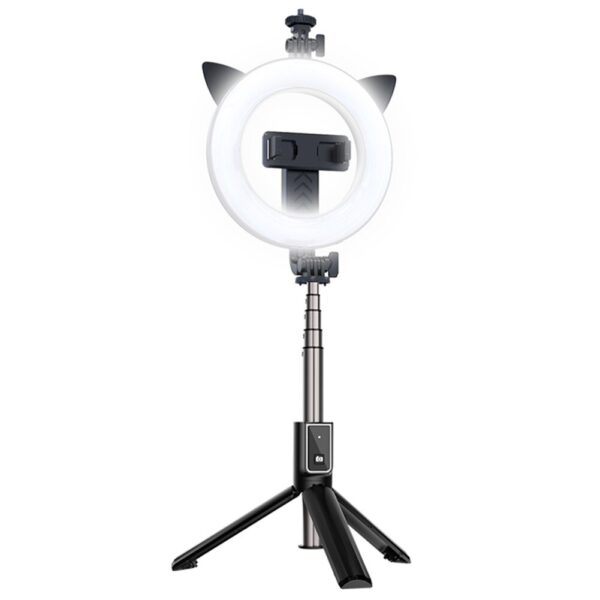 Asmenukių lazda – su atjungiamu bluetooth nuotoliniu valdymu, tripod and ring lamp – P40D-3 juodos spalvos