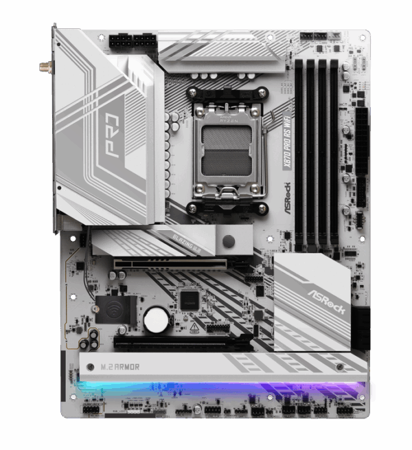 The ASROCK X870 PRO RS WIFI is equipped with the mid-tier X870 chipset for AMD’s Ryzen 9000 series processors and boasts numerous features for gamers. The Ryzen 9000 series processors also utilise the proven AM5 socket (LGA 1718).