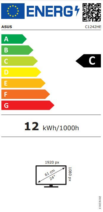 ASUS C1242HE kompiuterio monitorius 60,5 cm (23.8″) 1920 x 1080 pikseliai „Full HD“ LCD Juoda