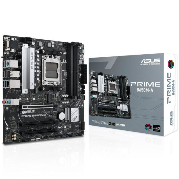 ASUS Prime series motherboards are expertly engineered to unleash the full potential of AMD Ryzen 7000-series processors. Boasting a robust power design, comprehensive cooling solutions and intelligent tuning options, PRIME B650M-A provides users and PC DIY builders with a range of performance optimizations via intuitive software and firmware features.