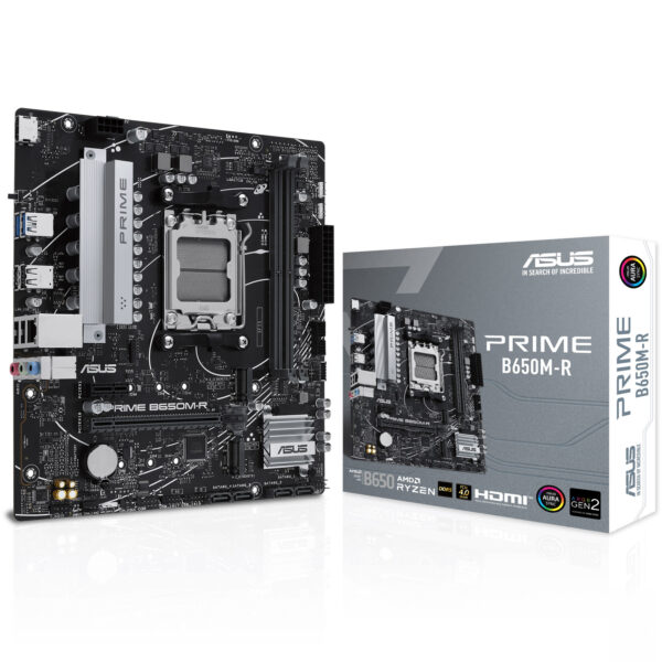 The Prime B650M-R motherboard from ASUS is specifically designed for Ryzen 7000 and 8000 processors. With the Micro-ATX standard, you can easily install it in smaller and more compact cases.