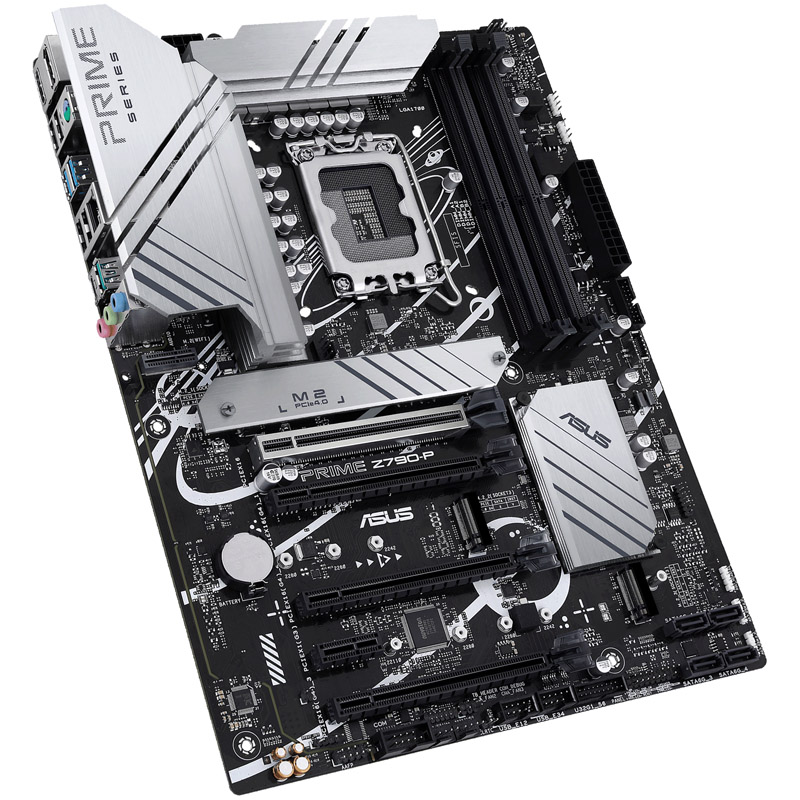 The ASUS Prime Z790-P is an ATX motherboard featuring the high-end Intel Z790 chipset and LGA 1700 socket. This mainboard is suitable for desktop processors of the 12th and 13th generation Intel Core CPUs, codenamed Alder Lake and Raptor Lake. It supports DDR5 memory up to 7,200 MHz and, thanks to its outstanding power delivery, is excellent for overclocking.