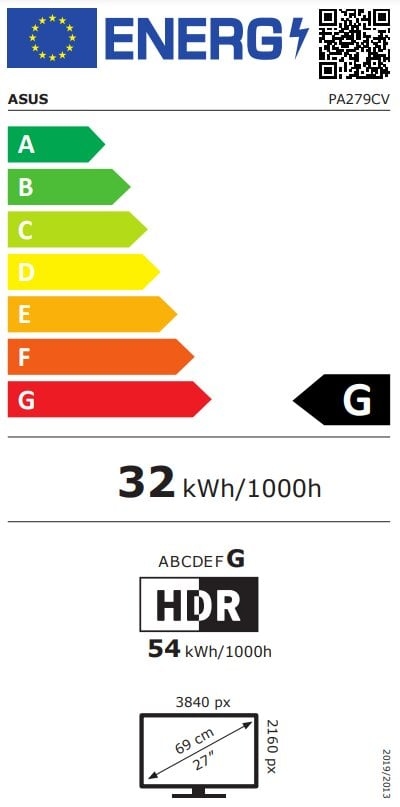 Energijos vartojimo efektyvumo klasė (HDR): G,