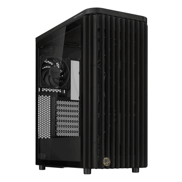 The ASUS ProArt PA401 Wood Edition impresses with its black appearance, allowing the midi tower to fit into almost any setup. The front is made of black wood. It offers enough options to install your desired gaming hardware. Multiple fans ensure good airflow, keeping your components cool.