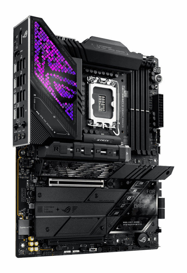 The ASUS ROG STRIX Z890-E GAMING WIFI is an ATX motherboard featuring the high-end Intel Z890 chipset and the LGA 1851 socket. It supports Intel Core Ultra processors of the second generation with the codename Arrow Lake. The Intel Z890 motherboard natively supports USB4, which offers data transfer rates of up to 40 Gbit/s. Furthermore, the ASUS ROG STRIX Z890-E GAMING WIFI impresses with full PCIe 5.0 connectivity, providing you with double the bandwidth for graphics cards and NVMe SSDs compared to PCIe 4.0.