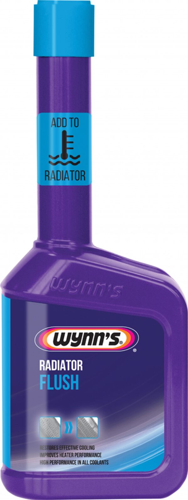 > Kad priemonė geriau veiktų, pirmiausia pakeisti senąjį aušinimo skystį vandeniu ir po to pripilti WYNN’S Radiator Flush priemonės.