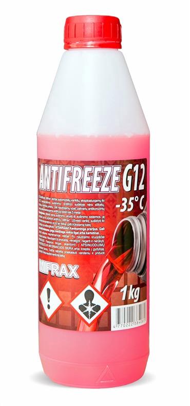 Prekės ženklas- Mifrax. Aušinimo skysčio tipas – Antifrizas. Spalva- Raudona, Rožinė. Talpa/svoris- 1 kg. Skirtas aušinimo sistemoms iki – -35 °C. Reikia skiesti distiliuotu vandeniu – Ne. Koncentratas- Ne. Antikorozinių priedų klasė- G12. Papildoma informacija- Tipas: G12. Temperatūra iki -35°C.
