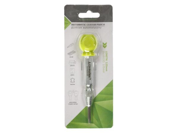 Punches are designed for quick, precise marking of points on the surface of the processed material, e.g. wood, metal or plastic. They are most often used to mark a point before starting drilling. Punching makes it easier to start drilling, reducing the unfavorable effect of the drill sliding on the surface of the material. The marking is created by hitting the material with the sharp end of the punch. The traditional method of scoring requires the use of a hammer. Automatic punches mark the material thanks to the use of a strong internal spring that moves a hardened steel needle. Therefore, they eliminate the need to carry a heavy hammer. The punch does not require tensioning the spring – this is done automatically. Immediately after pressing the needle to the material and hitting, we can repeat the operation, marking another point. The punch has an adjustable impact force used for optimal adjustment to the hardness of the marked material.