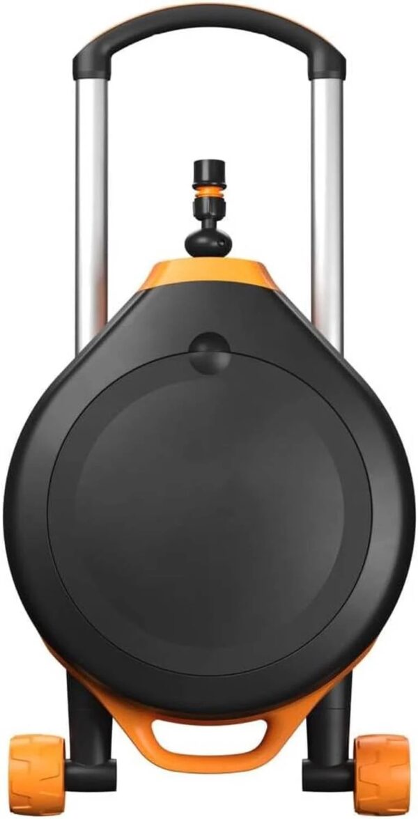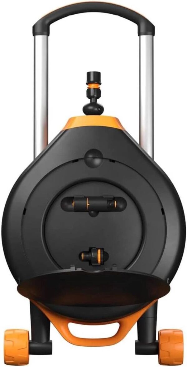 - The Jį galite pastatyti bet kurioje sodo vietoje, o 360° pasukimo dėka lengvai laistysite visus kampus ir kraštus. Be to, ši žarnos ritė leidžia laistyti iki 2 kartų