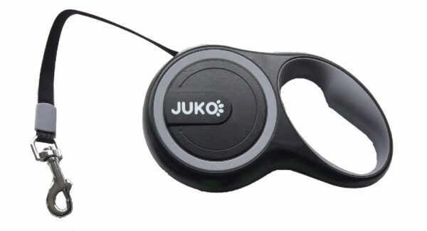 Savaime susitraukiantis pavadėlis S 3m 15kg juosta – pilkaJuosta savaime susitraukiantis pavadėlis lengvai šuo valdymui. Mech…