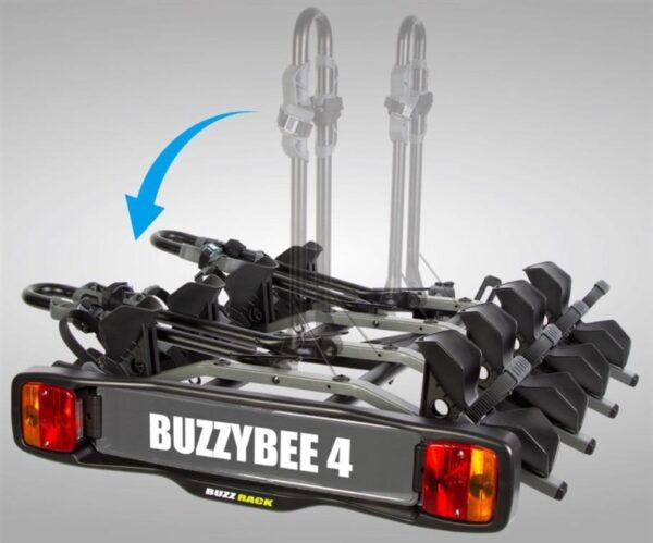 Prekės ženklas- BuzzRack. Modelis- New Buzzybee 4. Tvirtinimo būdas- Ant kablio. Maksimalus dviračių skaičius- 4. Maksimalus dviračio svoris- 15 kg. Galima sulankstyti- Taip. Ilgis- 102 cm. Plotis- 28 cm. Dviratis rakinamas prie laikiklio- Ne. Svoris- 15.5 kg. Medžiaga- Plastikas, Plienas.