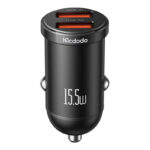 The charger is made of durable PC. Its compact design (68 x 50 x 50 mm) facilitates easy mounting in the car. It comes with a retractable cable with a length of 70 cm, with an additional 15 cm section, allowing for unrestricted device use while charging.