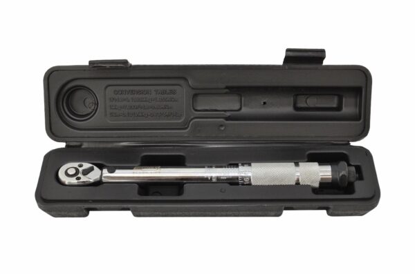 Pagamintas iš aukštos kokybės termiškai apdoroto CrV plieno su poliruotu paviršiumi. Rantuota rankena užtikrina tvirtą suėmimą. Turi išgraviruotą skalę, kad būtų lengva nuskaityti duomenis. Pagrinde esantis varžtinis fiksatorius apsaugo nuo nustatymų pasikeitimo naudojimo metu. Reketinis mechanizmas su dešinės/kairės krypties jungikliu. Tiekiamas praktiškame plastikiniame dėkle. Leidžia tiksliai priveržti veržles ir varžtus nustatytu sukimo momentu. Idealiai tinka techninės priežiūros darbams automobilių ir dviračių pramonėje. Techniniai duomenys: Jungtis: 1/4″ Sukimo momentas: 5-25Nm Bendras ilgis: 270mm Svoris: 760g