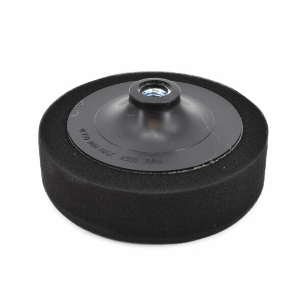 Minkšta poliravimo kempinė, juoda, skirta baigiamiesiems poliravimo darbams ir lako blizginimui. Kempinės struktūra leidžia sulaikyti vandenį viduje, taip pašalinant šilumą nuo poliruojamo paviršiaus. Turi plastikinį gaubtą, kuris apsaugo nuo atsitiktinio kontakto su paviršiumi. Tinka kampiniams šlifuokliams ir gręžtuvams (M14 sriegio tvirtinimas). Suderinama su mažo abrazyvumo poliravimo pastomis ir pieneliais. Techniniai duomenys: Matmenys: 125mm x 45mm Tvirtinimas: M14 sriegis Svoris: 70 g
