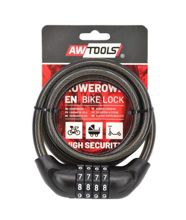 Plieninė pintas lynas su plastikine danga, apsaugančia dviratį nuo subraižymų. Koduojama keturių skaitmenų spyna, nustačius individualų kodą, leidžia greitai ir saugiai užrakinti dviratį. Spyna padengta saugia plastikine danga, kuri amortizuoja atsitiktinius smūgius. Puikus apsaugos variantas dviračiams, paspirtukams, motoroleriams ar vaikiškiems vežimėliams. Techniniai duomenys: Ilgis: 120cm Skersmuo: 10mm Svoris: 260g