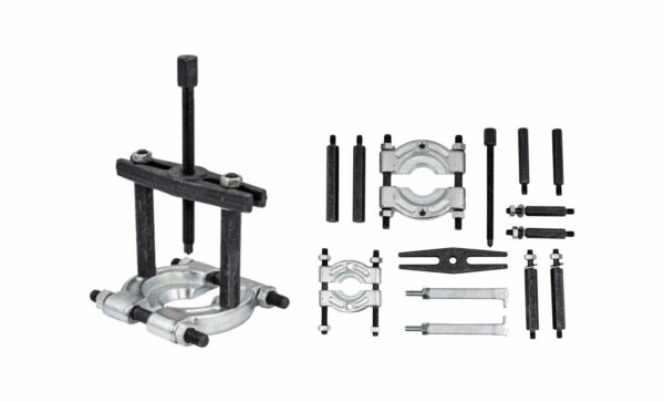 Pagamintas iš aukštos kokybės anglinio plieno, oksiduotos svirtys, chromuotos kojelės. Varomas sraigtu su trapeciniu, smulkiu sriegiu. Skirtas guolių, krumpliaračių, skriemulių, velenų ir kt. nuėmimui. Naudojamas automobilių servisuose ir mechaninėse dirbtuvėse. Viskas supakuota plastikiniame lagamine. Techniniai duomenys: Kiekis: 14 vnt. Ilgintuvai 17mm x ilgis 110mm Ilgintuvai 17mm x ilgis 80mm Ilgintuvai 14mm x ilgis 90mm Svirtys 110mm Didesnis skirtuvas: maks. darbinis diapazonas apie 70mm Mažesnis skirtuvas: maks. darbinis diapazonas apie 75mm Svoris: 5,4 kg Rinkinį sudaro: 1x Hidraulinis varžtas 1x Apkaba 2x Skirtuvas 1x Traukiamasis varžtas 2x Nuėmiklis 2x Svirtys 6x Ilgintuvas Lagaminas laikymui