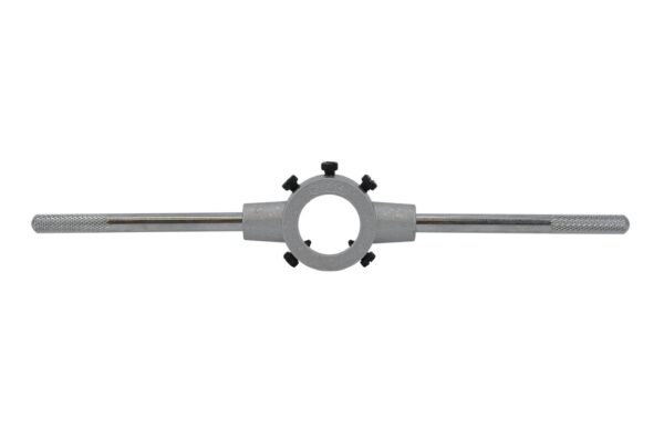 Pagamintas iš ketaus korpuso ir plieninio laikiklio su 5 tvirtinimo varžtais. Turi atsukamas rankenas su rantytais galais, kurie užtikrina tvirtą suėmimą ir apsaugo nuo slydimo. Skirtas standžiam apvalių sriegiklių tvirtinimui rankiniam sriegimui. Techniniai duomenys: Tvirtinimo diapazonas: M3-M4 Ilgis: 180 mm Skersmuo: 20 mm Aukštis: 5 mm Svoris: 80g