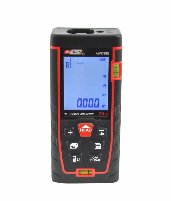 Skirtas atstumams nustatyti ir matuoti. Įsimena iki 99 paskutinių matavimų. Leidžia atlikti pavienius, tęstinius matavimus, skaičiuoti plotą, tūrį, trikampio kraštinės ilgį (Pitagoro teorema). Turi aiškų apšviečiamą LCD ekraną ir du gulsčiukus. Gumuoti kraštai užtikrina patikimą suėmimą ir apsaugo prietaisą kritimo metu. Matavimo atlikimas signalizuojamas garsiniu signalu. Automatinis lazerio išsijungimas po 20 s. Automatinis lazerinio atstumo matuoklio išsijungimas po 150 s. Maitinamas 2 AAA baterijomis. Techniniai duomenys: Matavimo diapazonas: 0,05-50 m. Matavimo tikslumas: 2 mm. Matavimo vienetai: metrai/pėdos/coliai. Lazerio klasė: II. Lazerio tipas: 630-670 nm, <1 mW. Matmenys: 112x50x25 mm. Svoris: 225 g. AW17550
