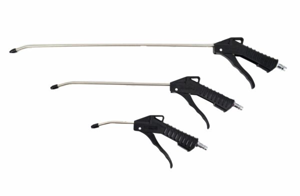 Metalinė konstrukcija užtikrina tvirtumą ir ilgaamžiškumą. Ergonomiška, profiliuota plastikinė rankena leidžia patikimai suimti įrankį. Integruotas pistoleto gaidukas užtikrina geresnę kontrolę pučiant orą. Komplektuojamas su metaliniu antgaliu ir greito sujungimo jungtimi. Skirtas dulkėms ir nešvarumams šalinti iš sunkiai pasiekiamų vietų. Naudingas darbams, kuriems reikalingas suslėgtas oras, pavyzdžiui, nešvarumų šalinimui, bekontakčiam džiovinimui ir pūtimui. Techniniai duomenys: Kiekis: 3 vnt. Antgalių dydis: 110, 320, 520 mm Jungtis: 1/4″ Maks. darbinis slėgis: 0,8 MPa Svoris: 330g