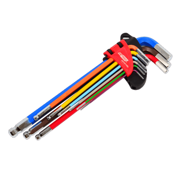 AWTOOLS RAKTAI ŠEŠIAKAMPIAI HEX / 1,5-10,0mm / 9vnt. SPALVOTI SU RUTULINE GALVUTE ILGI BLACK LINE