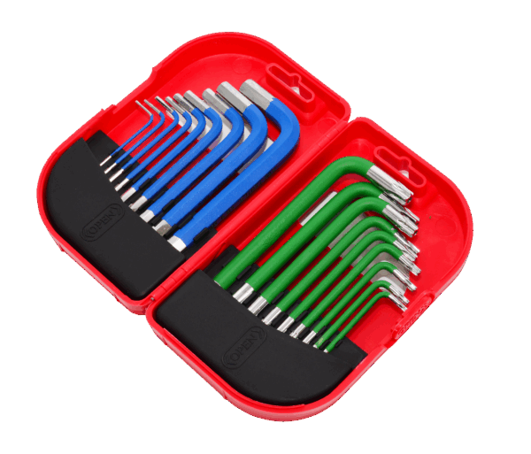 AWTOOLS ŠEŠIAKAMPIŲ/TORX RAKTŲ RINKINYS / 1,5-10,0mm/ 18vnt. SPALVOTI