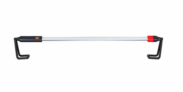 Korpusas pagamintas iš aliuminio ir plastiko su neslystančia TPR danga. Lęšis iš smūgiams atsparaus polikarbonato. Ištraukiami guma dengti kabliukai. 360° kampu reguliuojama padėtis. LED baterijos įkrovos indikatorius. 3 ryškumo režimai. Idealiai tinka automobilių dirbtuvėms, padangų montavimo servisams ir techninės priežiūros centrams. Komplekte 2x ličio jonų akumuliatorius ir USB laidas. Techniniai duomenys: Šviesos šaltinis: 50 x SMD LED Baterija: 3,7V 4800mAh Li-ion akumuliatorius Ilgio reguliavimas: 117-190cm Šviesos srautas / Veikimo laikas: – žemas režimas: 500lm / 4val. – vidutinis režimas: 1000lm / 2val. – aukštas režimas: 2000lm / 1val. Įkrovimo laikas: 4val. Standartinis dydis: 1170 x 110 x 180 Išskleistas dydis: 1900 x 110 x 180 CCT: 6500K Apsaugos klasė: IP20 Atsparumas smūgiams: IK07 Svoris: 1,85 kg
