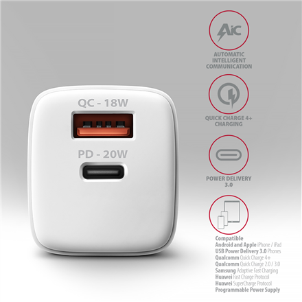 AXAGON ACU-PQ20W wall charger QC3.0/AFC/FCP + PD type-C, 20 W – white