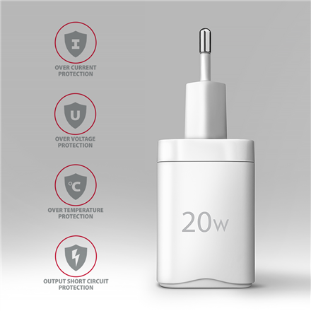 The advanced protection system at the charging adapter output protects the device being charged from damage. The charger function also detects the device being charged and selects the optimal charging speed and progress.