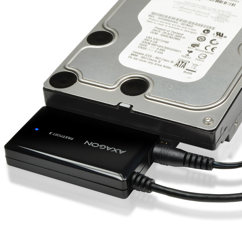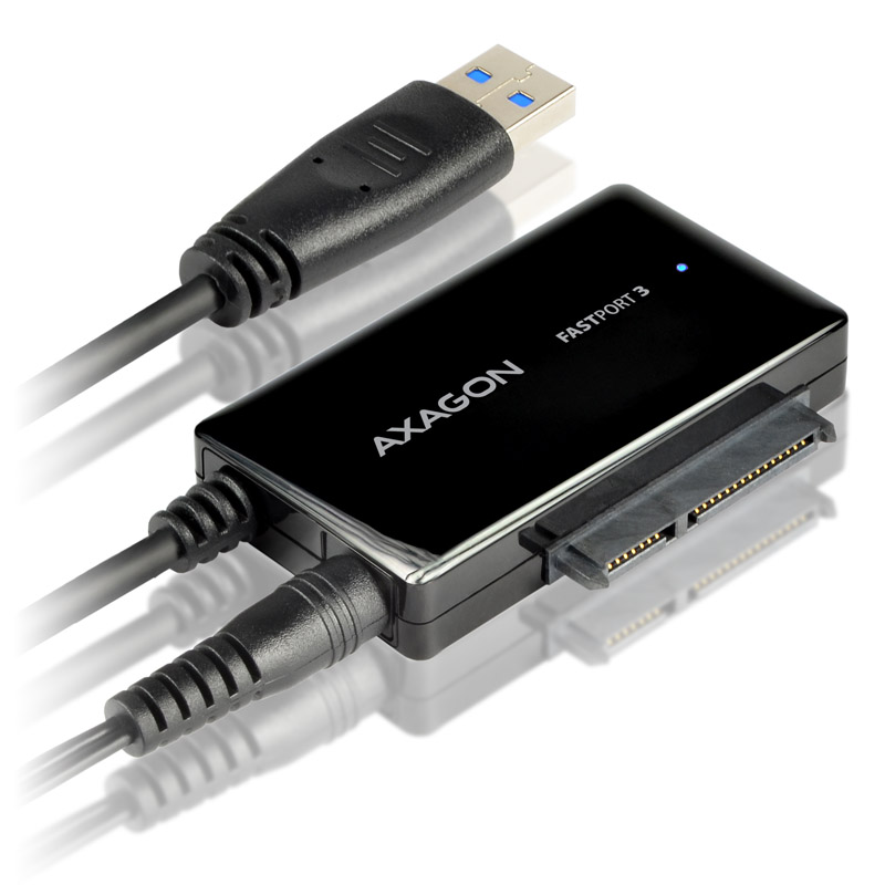 The universal all-in-one AXAGON ADSA-FP3FASTport3 adapter with USB 3.0 and SATA 6G interface for easy connection of any SATA disk or drive.