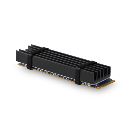 The universal passive heatsink can be used for M.2 cards, size 22 x 80 mm. Two supplied thermally conductive pads allow cooler installation for all one-sided as well as double-sided M.2 SSD disks.