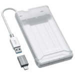 NVMe and SATA enclosure with USB Type-C, USB 3.1 with 10 Gbit/s, supports M.2 NVMe and SATA, includes USB Type-C to USB Type-A adapter, suitable for 2230/2242/2260 and 2280, SMART info support.