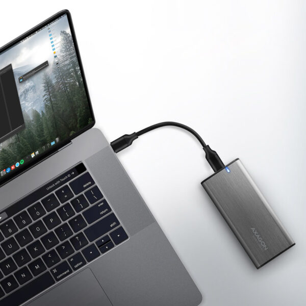 Universal external AXAGON EEM2-SG2 RAW box with USB 3.2 Gen 2 interface is designed for M.2 NVMe or SATA SSD disks. The double-sided USB-C connector on the box enables a reliable connection. The package includes not only a USB-C -> USB-C cable for connecting the box to a computer, but also a USB-C -> USB-A adapter. You can connect the box to any free USB port on the notebook.