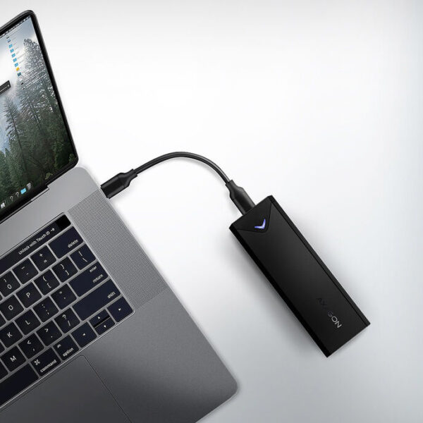 With the AXAGON M.2 enclosure, you can easily connect your M.2 SSD to your PC via USB Type-C. You need to ensure that M.2 SATA SSDs are only compatible with the enclosure in the NVMe variant. With a 50 cm long detachable cable, the enclosure can be easily stored and is thus a compact companion for your everyday life. The design with just one screw and hot-plugging support simplifies installation and allows for quick and easy hot-swapping of your M.2 hard drive.