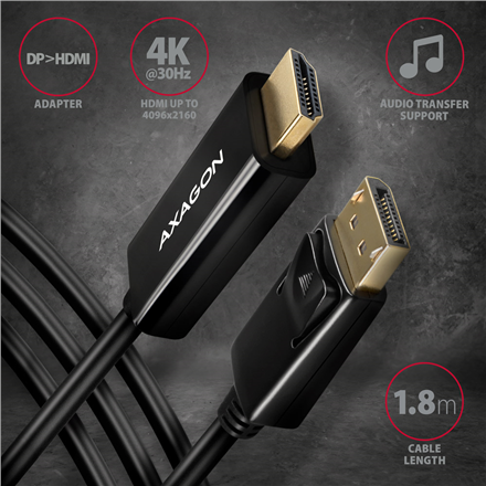 AXAGON RVD-HI14C2 DisplayPort to HDMI adapter cable, 4K/30 Hz, 180 cm long – black