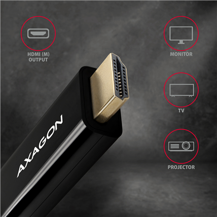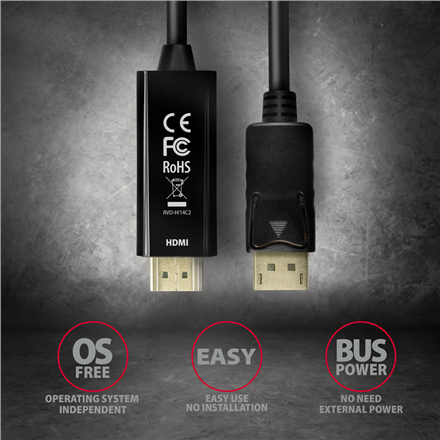 DisplayPort -> HDMI active cable – adapter AXAGON RVD-HI14C2 to connect HDMI monitor/TV/projector to the computer with the DisplayPort output.