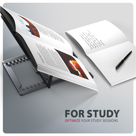 The aluminium die-cast frame offers a high load capacity of up to 20 kg. Non-slip contact surfaces keep your laptop or tablet securely in place while protecting the device’s surface. Books or other devices can also be placed stably.
