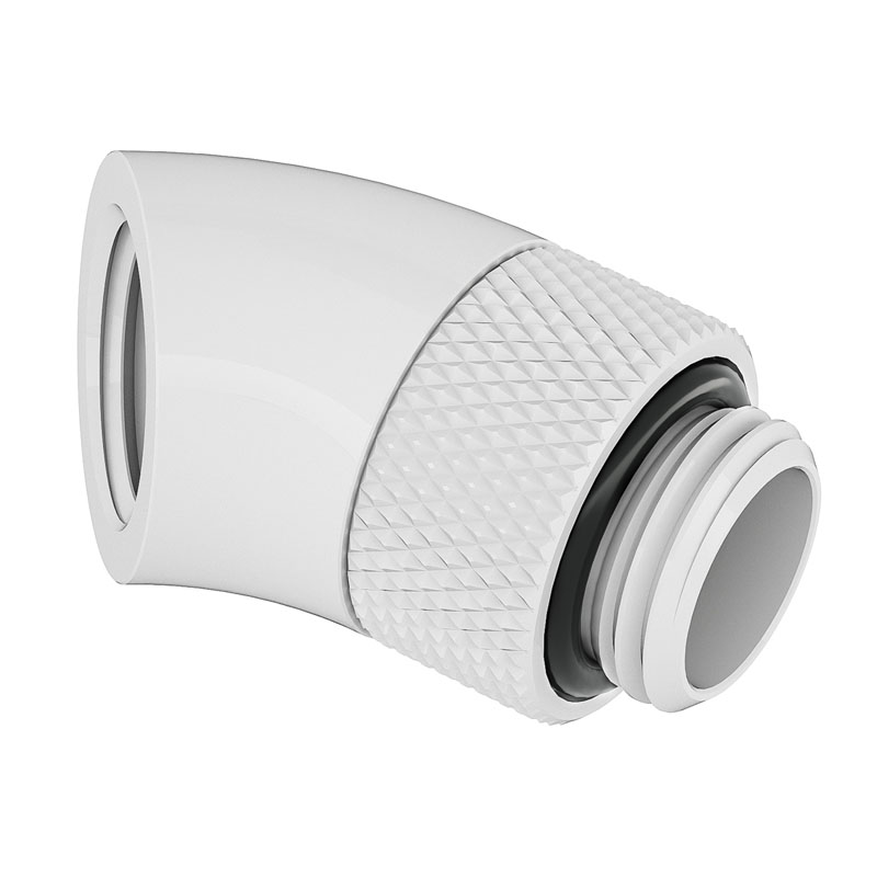 Rotatable 45-degree adapter in white, for custom water cooling, G1/4 inch female to G1/4 inch male