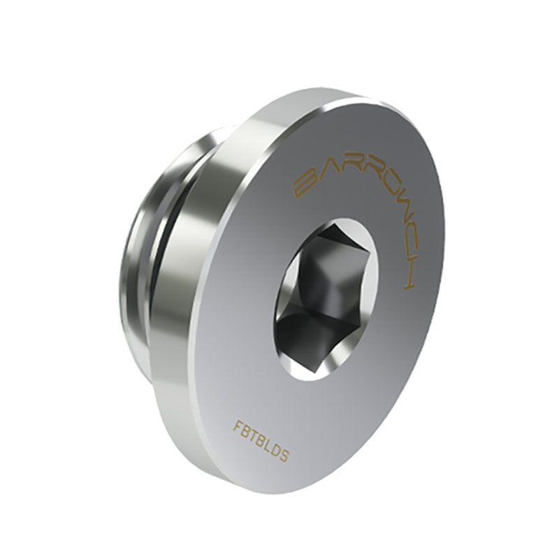 Silver plug, for G1/4-inch threads, made of brass, closes off unused connections.