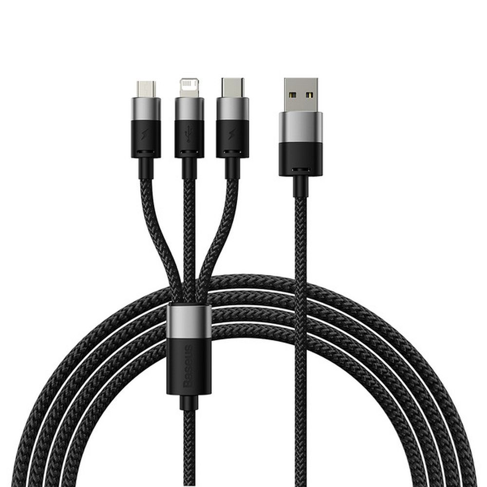 BASEUS kabelis 3in1 USB A į Micro USB / Lightning / Type C 3,5A 6CAXS000001 1,2 m juodos spalvos