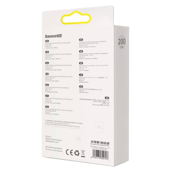 USB Cable for Lightning Baseus Crystal, 2.4A, 2m (blue)
