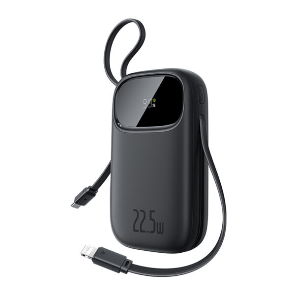 Baseus EnerFill FC31 20000mAh 22.5W Powerbank with Digital Display and 2 Built-in Cables (USB-C + Lightning) – Black