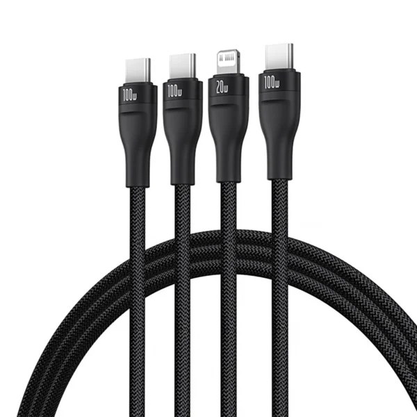 Baseus Flash Series 3 3in1 cable 100W USB-C – USB-C+USB-C+ Lightning 1.5m – black